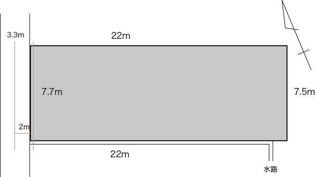 前面道路の幅員が4m以下のため、道路中心線から2m部分までセットバックした地点(敷地境界線より35cm後退)が建築可能な敷地面積となります。